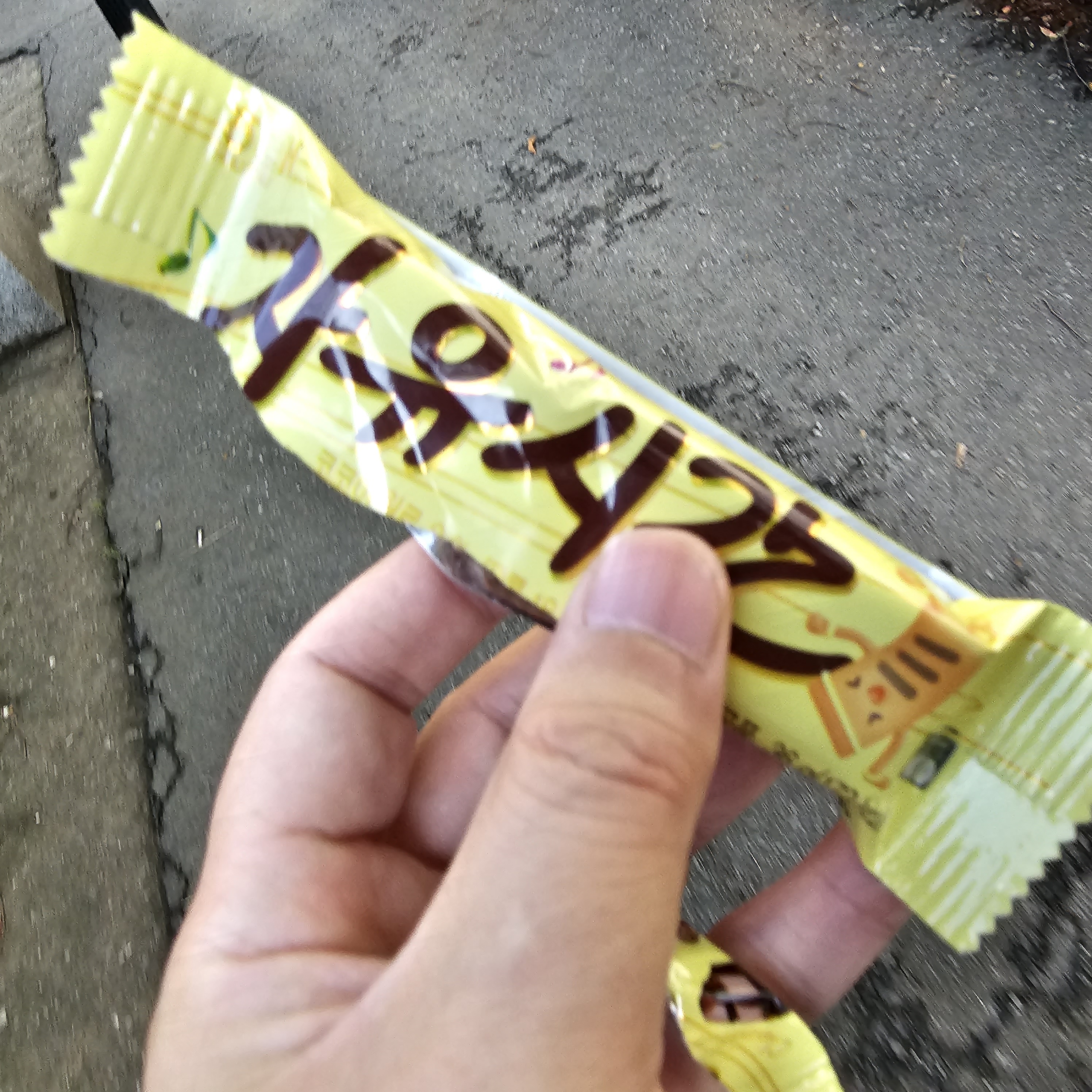 진열대에서 가져온 자유시간 초콜릿을 셀프 계산대로 가져옵니다.